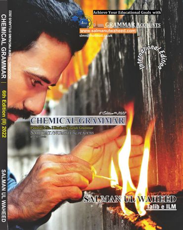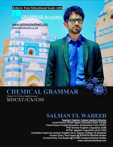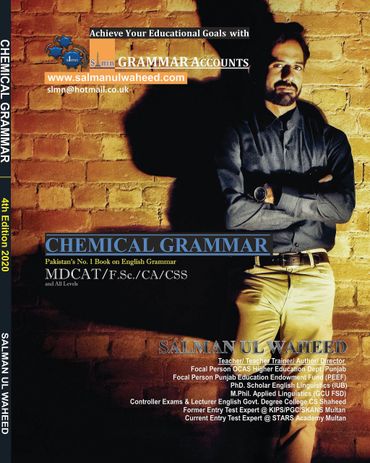 "CHEMICAL GRAMMAR" is the country's only book that meets the requirements of MDCAT/NUMS & CSS English Grammar in a true sense. No rule in the final paper comes out of this book. NMDCAT 2020/2021/2022 /2023/2024 and NUMS 2020 to 2024 were made from this book because the paper setters picked sentences from the examples given in its exercises. It's for all provinces MDCAT. Thousands of students including the Toppers of UHS & PMC have achieved their goals after preparing from this book. The 9thInternational Edition of CG has been launched alongwith the 8th edition of "PMC/ NUMS MDCAT VOCAB PLUS" also written and published by Prof. Salman ul Waheed. The method to get these valuable books of the world of NMDCAT & CSS is very very easy.